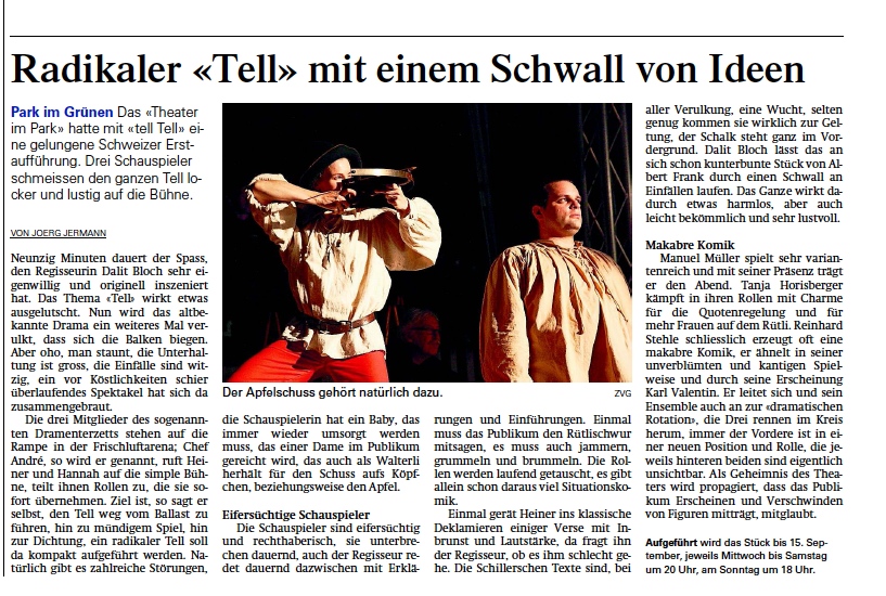 Presseberichte zu "tell Tell"bz vom 11.08.2012 (.jpg)Badische Zeitung vom 11.08.2012 (.pdf)Link zum Artikel in der online Ausgabe der Badischen Zeitung